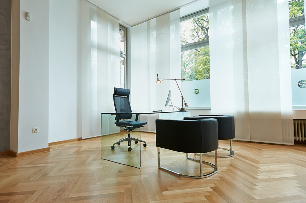 Unsere Praxis befindet sich in einer historischen Villa, die mit viel Liebe zum Detail restauriert wurde. Die großzügigen, lichtdurchfluteten Räume sorgen für eine entspannte Atmosphäre, in der Sie sich rundum wohlfühlen können.
